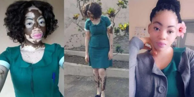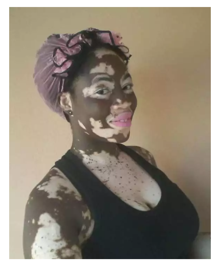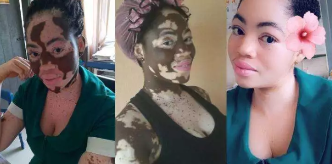 Meet a beautiful Ghanaian nurse,Enam Honya Heikeens who was born with an ebony skin but her skin got taken over by a skin condition called Vitilgo.