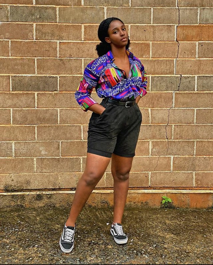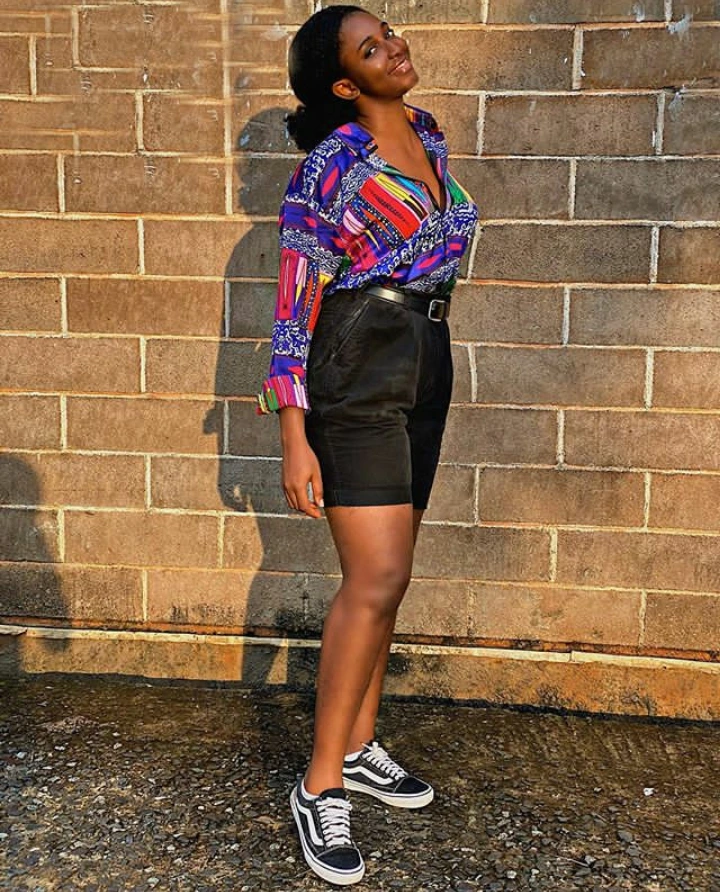 Sharing the photos, she was seen rocking a multi-coloured T-shirt tucked into a black Jean bumshot