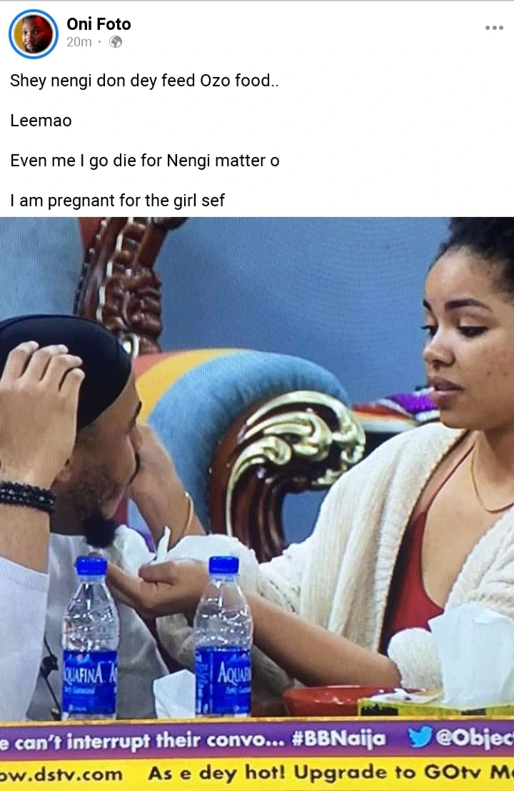 Shey Nengi dey feed Ozo food, even me I go die for Nengi matter o. I'm pregnant for the girl sef