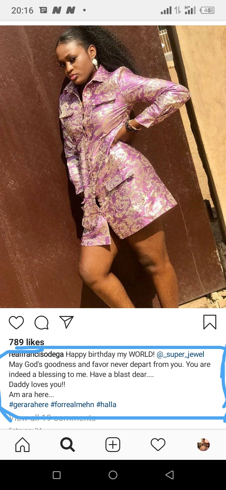 Francis Odega's daughter answers Jewel on her Instagram account. She really looks like a jewel judging from her pictures, who knows, she might be an actress one day. See some of her photos.