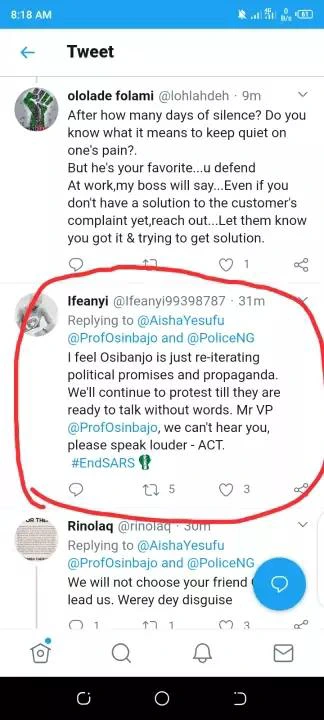 She told the vice president, that he kept quiet all this while and watched how innocent Nigerians are being killed, and he did nothing. She also illustrated how soldiers and police were attacking and killing innocent protesters right in front of the National Assembly, and he still kept Mute.