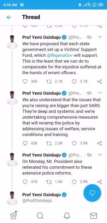 The Vice President of Nigeria, Yemi Osinbajo finally apologized to all Nigerians. After he posted his apology on the official Twitter account, he told Nigerians of the progress they have made regarding the #EndSARS protest
